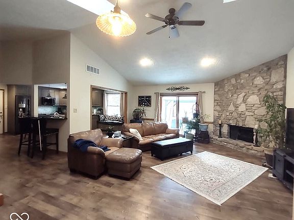Welcome Home! This charming ranch home is perfectly situated on almost an acre, and has no association, it is move in ready and located in Carmel! You will feel at home from the moment you pull up on the stone aggregate driveway. This ranch home offers a maintenance free exterior that includes stone, hardiplank cement siding, paver patio, storage barn, 3 large bedrooms, 2 full baths, 2 car garage with service door and wash up area & sink, and a fully fenced acre of land. The great room offers a cathedral ceiling, skylights, stone fireplace and opens to the dining room, kitchen. The large, recently updated kitchen offers a breakfast area, window seating area, plenty of new cabinetry for storage and granite countertop space, a beautiful island for additional storage, stone back splash, new lighting, luxury vinyl plank flooring, the new black stainless steel appliance package stays with the home. The master/primary bedroom includes a walk in closet and full bath with tile flooring, all of the bedrooms are large and offer large closets. The home's new items include a new 50 yr warranty roof, new 6" gutters with guards, water heater, hvac system 10 yr transferrable warranty, all window on sides and rear of home are new, exterior hardiplank, irrigation system (front yard), black stainless steel appliance package. The Generac whole home generator will keep the lights on regardless of the conditions outside (comes with a transferrable warranty)! This home is a must see.