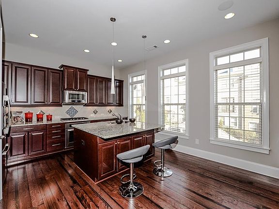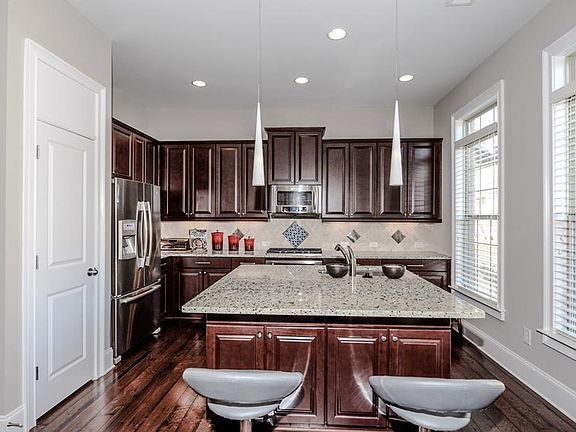 Incredible upscale, end unit townhome in gated community. Immaculate condition and finishes and private decks overlooking the woods. Gorgeous hardwoods, upgraded lighting, surround sound speakers built into the living room, kitchen and on the deck as well as an extra large island in the kitchen. The two decks have peaceful views plus there is a patio off the terrace level - this home has it all! Walk to shopping and dining and super easy access to the interstate. Largest floor plan features sunroom and sitting room in the master bedroom-plus tons of storage!