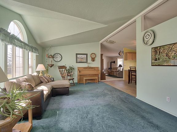 Welcome home! This cute home is situated on over an acre with wonderful views out the front and back with lots of privacy! A great open floor plan with 4 bedrooms and 2 full bathrooms. The living room has beautiful, large windows, gas fireplace and vaulted ceilings. Ample kitchen space with lots of cabinets and over sized dining area. The Master bath has a jetted tub plus a shower. PLUS, an amazing attached 3 car garage for all your storage needs. Established lawn, mature trees, shed, large back patio! This home has been meticulously cared for and is just waiting for it's new owner!