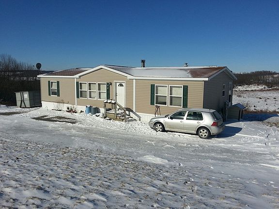JUST REDUCED Quiet country living with stunning sunset views is the best way to describe this property. Situated on 5+ acres overlooking a 100+ acre old farm, this quality manufactured home is priced to move. The backyard is totally private and has several fruit trees and bushes (apple, pear, wild strawberry and blueberry, blackberry and raspberry) You get access to hunting and ATV trails. Close proximity to state parks and Greek Peak Mountain Ski Resort and Adventure Park and indoor water park. House is in great repair, needs nothing but could use a few cosmetic upgrades. Beat the spring rush and close on this property at a discount today. Home is 3 bedrooms 2 bath (including master bed/bath) - master bath includes large soaker tub and separate shower. Large living room, (20x14) and large eat-in kitchen, good sized 2nd and 3rd bedrooms (11x11) (11x12). Centrally located real stone fireplace with raised hearth and fan ceiling fans in master and living room detached 28x14 single car garage large driveway with parking for 4+ cars Deal includes all appliances dishwasher, new fridge, propane stove, large chest freezer, new washer and dryer. Special bonus at asking price is a very nice 2000 Honda Rancher 4x4 ATV with a snow plow and 48" Swisher lawn mower to help with all your landscaping needs. This is a $3000+ value all by itself. We are very motivated to sell as we are moving out of state due to job transfer and would like to get a deal done ASAP, all reasonable offers will be considered.