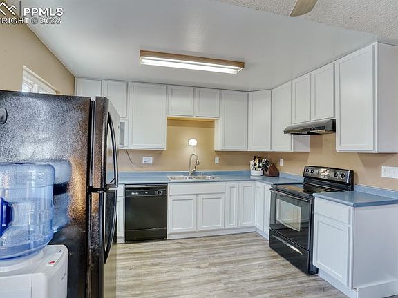 Welcome to this charming tri-level in Garden Ranch! This home features 3 bedrooms, 3 bathrooms, and a 1 car garage on a large lot! As you walk in, you are greeted by beautiful vinyl floors that flow nicely through the main level. The living room, naturally lit by the front facing bay window, flows into the kitchen/dining area with tons of cabinet space and a walkout to the back patio. UPDATED Kitchen with newer cabinets & countertops!! Upstairs, there are three bedrooms, two standard sized rooms with wood floors and ceiling fans, and the primary bedroom with wood floors and an UPDATED ensuite 3/4 bathroom. The lower level has a large family room with a fireplace, perfect for cozying up with loved ones in the winter. There is a large storage/utility room where the laundry space is located that has a walk out to the backyard and also an UPDATED ensuite 1/2 bathroom. UPDATED WINDOWS & A/C. OVERSIZED FRONT DRIVEWAY! The backyard is wonderful - lots of space with a large patio and pergola which make it perfect for entertaining. This home is conveniently located (walking distance even) to shopping, dining, entertainment, schools, parks, and trails. Only a 20 minute drive to either local Air Force base and 30 minutes from Fort Carson. Come and make this your dream home!