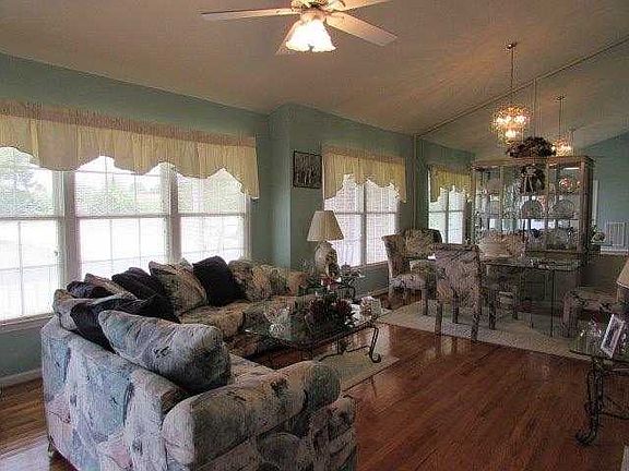 Country Living in Southeast Randolph County! Spacious 3 BR 2 bath brick home, hardwood floors in LR, DR, den, sunroom & BRs. LR & den have vaulted ceilings & wood burning fireplaces. Built-in book case in den. Beautiful sunroom w/vaulted ceiling & skylights. Eat-in kitchen with appliances (including refrigerator) & island. Nice master suite has large closet, ceramic tile flooring, jetted tub, separate shower & double vanity. Covered front porch, back deck & large screened in porch. Very nice home!