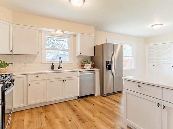 Situated in a great east side location near Good Shepherd and Stockwell schools this completely renovated tri-level home is move-in ready with all new windows, appliances, flooring, lighting, fixtures, paint throughout, and much more! This home has great curb appeal with covered front porch, landscaping, new front door, and new exterior paint. You will immediately appreciate the renovations when stepping inside the foyer with gorgeous luxury vinyl plank flooring that continues throughout the main level. The spacious living room with picture window providing an abundance of natural light is open to the dining area and kitchen. The fully renovated kitchen features an abundance of new cabinetry, quartz countertops, new stainless steel appliances including gas range, tiled backsplash, breakfast bar, and a large eating area. The upper level with new carpeting throughout offers an owner’s suite with double closets and an ensuite bath with walk-in shower and updated vanity. There are two additional bedrooms on this level with access to the beautiful updated full bath featuring new vanity top, linen closet, and a tub/shower combo. The lower level offers a spacious family room with fireplace, a home office, a fourth bedroom, and utility room for storage and access to the backyard. The laundry is conveniently located off the oversized 2.5 car garage with workshop area and service door. Outdoor enjoyment is easy with the large private backyard with storage shed. This immaculate home is totally updated and is being sold as-is with a one year home warranty.