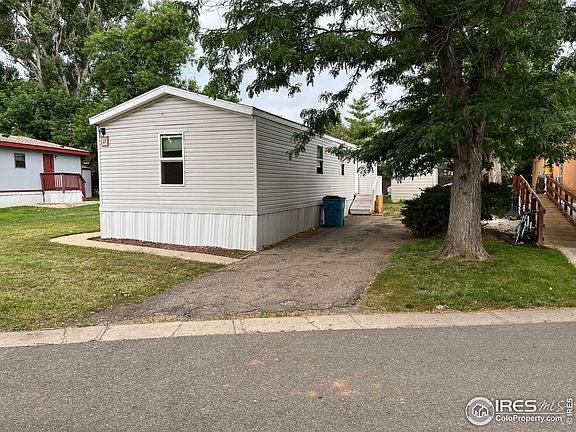 Take a look at one the most affordable homes in Fort Collins! This quiet 2 bed, 1 bath home with a view of Horsetooth Rock is located in an all ages community and is close to the pool & clubhouse making it very easy to find and has plenty of additional parking nearby. The kitchen has custom cabinets, a large prep area and a large pantry. The bathroom also has custom cabinets and a new laminate countertop. A large storage shed with shelves provides plenty of extra storage. A brand new roof was just installed. Come and see it today!