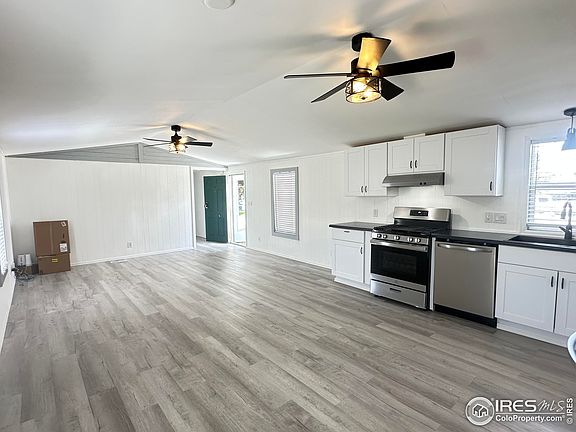 This extra spacious (1280sf) 3 bedroom, 2 bath home has many updates: New flooring, paint and lighting, new Kitchen Cabinets, Counter tops and appliances. New water heater and the roof has been inspected and re-sealed. The primary en suite bath is a room on it's own, it's 16x8 and there is an add'l walk-in closet as well! The open concept living room, kitchen and dining area have vaulted ceilings and separate the bedrooms from each other for privacy. This home is located in one of the best parks in Ft. Collins! Pet Friendly, all ages welcome. Well kept and centrally located, just a walk to Spring Canyon park where pups are welcome and so are humans. A short drive to Horsetooth Reservoir for water fun, hiking and biking. Old Town Shopping, CSU and charter schools are close by. It's located just outside city limits, so no city taxes due on the sale of the home. Come and see what this home has to offer. People and pets have to be approved by the park. All info deemed reliable, Buyer/buyer broker to verify all info. Lot rent may be subject to change.