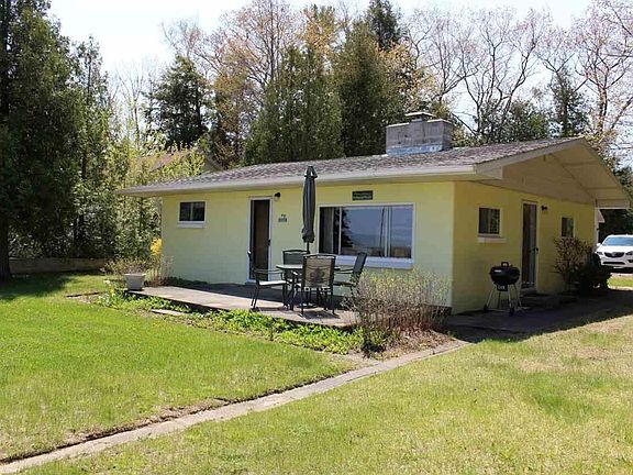 66' of beautiful sandy Lake Huron frontage in Greenbush. The 840 sf block home offers a bright eat-in kitchen, living area, 2 bedrooms with large closets and 1 full bath. Enjoy the large brick fireplace with natural gas insert and views of the water from the living area. This home is being sold as viewed with all furniture, appliances, linens, cookware, dishes and even the silverware (personal artwork and keepsakes not included). A 223' deep tree lined lot provides privacy plus plenty of outdoor living space with a fire-pit and large beach area. Storage space for all the extras can be found in the detached 2 car garage. Located in close proximity to several challenging area golf courses, state and federal land, and just minutes north of Oscoda for shopping and dining.