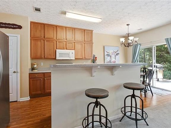 Beautiful town home on cul-de-sac street in lovely community, close to freeway, shopping, restaurants, schools and more. Spacious family room with gas-log fireplace and ceiling fan, separate dining room and bright open kitchen with breakfast bar, breakfast area, hardwood floors and custom cabinets. Three bedrooms up, including master suite with vaulted ceiling, ceiling fan, garden tub and separate shower. Awesome private extended back patio overlooks woods. Lawn maintenance included. 2021-05-14