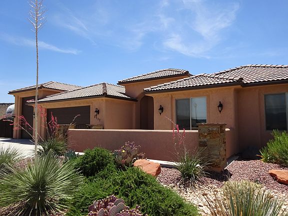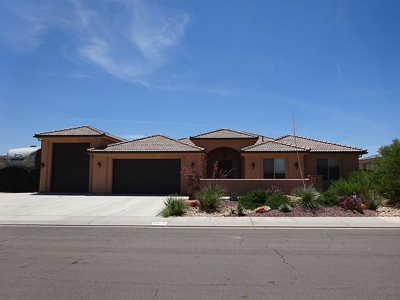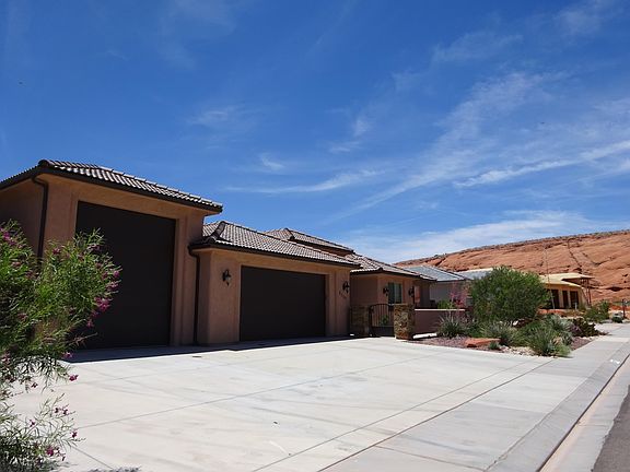 Amazing POOL HOME with RV Garage. Additional outside RV pad so bring your toys. Gas fireplace, granite countertops, travertine flooring, huge walk-in pantry, salt water pool & tons of storage. Premium lot with a private fully landscaped backyard with views bordering Sand Hollow Lake & next to Dixie Springs Park. Gorgeous coffered ceiling with ambient rope lighting. UPGRADES GALORE! A MUST SEE!