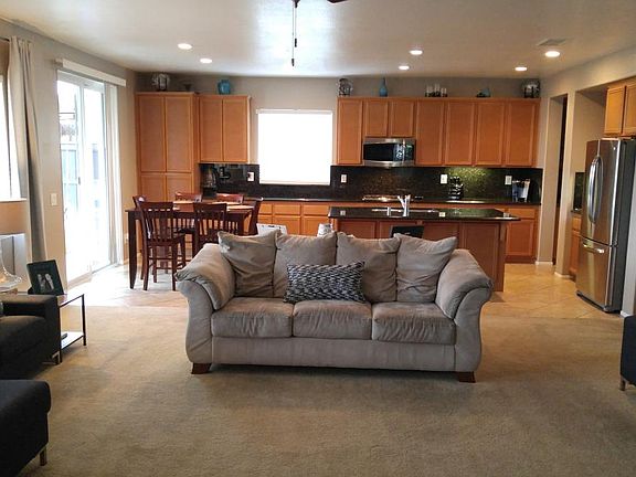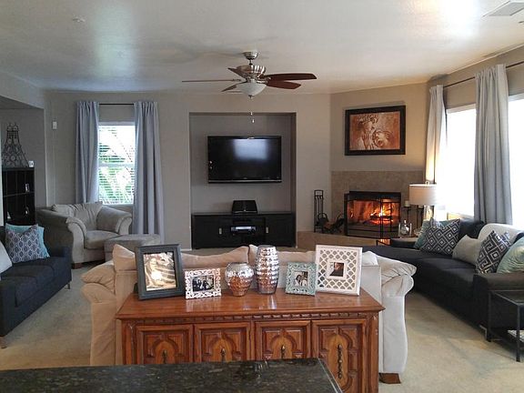 Available for rent in August is an amazing home. Perfect for entertaining family and friends. In the backyard is stamped concrete with a built in kitchen that has space for 8 stools to surround the BBQ grill, sink, a wall mount for your outdoor tv to watch the game while you grill and space for a under counter refrigerator that is ALL covered by a patio cover with 2 ceiling fans for those sunny California days. The back yard also has a water fountain for a soothing sound while you relax outside, space for a hot tub, a patio table to seat 6, and a conversational sitting space. The patio furniture can stay if requested with no additional fee. Inside is an open concept heaven with the oversized eat in kitchen with stainless steal appliances and granite counters, a large kitchen island and large tiles. A gas/wood fire place is in the living room for those cold nights. A half bath, formal dinning room and family room, and a coat closet round up the downstairs. Upstairs is a large loft, large laundry room, the 4 oversized bedrooms with plenty of closet space and one of the two full baths that has double sinks. The master suite is huge and located on the opposite side of the other 3 rooms separated by the loft. It has a very large walk in closet, a spa tub, stand up shower, a vanity, and double sinks. The toilet is in its own space with a door for those who prefer/need to have space/privacy. This home has a 3 car tandem garage that is perfect for some additional storage. The driveway also has space for 3 cars. The home also has solar panels for a MUCH lower electric bill, especially in the summer. Down the street is a community playground and basketball court with space to grill out as well. This is a clean, must see home with so much more to offer you than any other home available. Owner pays for yard maintenance. Solar panels require internet service which will be the renters responsibility.