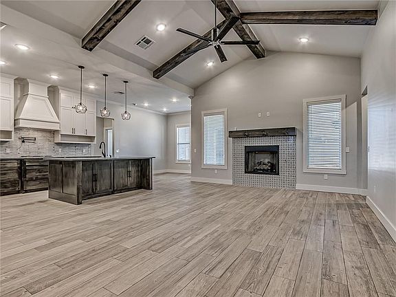 The home search ends with this gem located just a short distance from OU's campus in the heart of Norman. Craftsman charm on the exterior and unique, one of a kind amenities on the interior. Gorgeous cathedral ceiling greet you as you walk in! Professionally designed palette creates a cozy feel and provides amenities that are different than any other! Kitchen has exclusive weathered granite, beautiful backsplash and ultimate walk in pantry. Tuxedo cabinetry compliments wood look tile that fills all high trafficked areas. Kitchen has tons of storage w/ cabinets to the ceiling. Floorplan is versatile with the highly desired flow where primary closet has access to laundry room. Primary suite has herringbone tile and large soaking tub! No detail is left unturned from built in desks & shelving in the guest rooms, jack & jill bathroom, floating cabinets in bathrooms, color changing lights in tray ceilings; Neighborhood has community pool & playground that kids dream about! It's a must see!