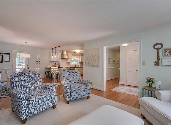 Gorgeously Updated Home in Stratford Hills---Minutes to the James & Downtown RVA! This Brick, Ranch-Style Home sits on a Large Lot w/a Circular Drive. Newly Painted Exterior & Trim! Sizable Living Room w/Hardwood Flooring, Gas Fireplace w/Mantle, & Crown Moulding. Open & Airy Dining Area has a Chic Chandelier, Chair Rail, & Door to the Newer Rear Wooden Deck. Updated Kitchen boasts Dark Granite Countertops, Updated Cabinetry w/Wine Storage, Gas Cooking w/GE Profile Stove Hood, SS Appliances, Bar Seating, & Large Basin Sink. Great Office/Study Space w/Built-In Desk for 2, Pocket Door, & Closet. Master Bedroom has HDWD Flooring, Built-In Cabinetry, Closet, Fan/Fixture, & Ensuite Bath w/Stall Shower. Bedrooms #2 & #3 have Double Door Closets & HDWD Flooring. Updated Hall Bathroom w/Tile Flooring, Tub/Shower Combo, & Updated Vanity w/Glass Sink Bowl. Full Walk-Out Basement offers Plenty of Space for Entertaining & boasts Tile Flooring, Brick FP w/ Gas Logs, Recessed Lighting, & is Wired for Surround Sound. You'll also find a Great Sized Workshop & Laundry Area, plus access to the Conditioned Crawlspace. Newer Heat Pump. Whole House Fan & Floored Attic. Detached Storage Shed.