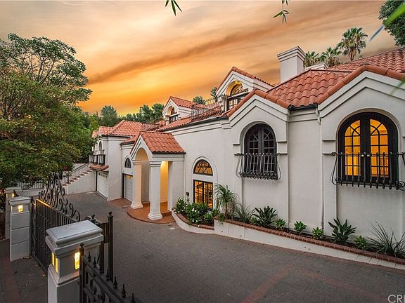 Stately poised behind a double gated circular drive, sits this captivating, elegant, luxurious and spectacularly remodeled Spanish Hacienda! Adorned with grand living spaces, stunning wood floors & a harmonious blend of Spanish styled influence infused with modern designer touches. Upon entering you will be immediately captivated by the stately two-story foyer and palatial formal living room with sweeping staircase overlooking the entertainers formal dining room. Outfitted with a true culinary kitchen anchored by its impressive center island & enhanced w/loads of custom cabinetry, quartz counters, walk-in pantry, top-of-the line stainless appliances & sunlit breakfast dining. Opening from the kitchen is the expansive family/media room highlighted w/central skylight, plastered fireplace & side lit French doors overlooking the peaceful grounds. Encompassing six exceptionally proportioned private suites that include a sumptuous master oasis w/three separate walk-in closets, lounge area, romantic fireplace retreat, two patio balconies & exquisite spa styled bath w/dual sink vanity, free standing soaking tub, dressing area & oversized seamless glass shower! Step out & relax in the ultra-private rear yard w/separate detached office/cabana, grassy play area & endless lounging venues, all surrounded by lushly landscaped tropical grounds & beautiful hillside views. Located within the Lanai School District w/easy Westside access. A magnificent estate you will surely not want to miss!