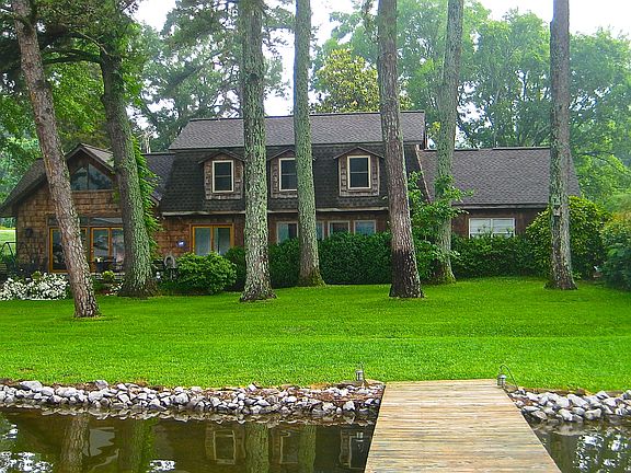 Flat Wooded waterfront. Exposed truss great room. 2 Master Suites. Updated Kitchen, Hardwood and Tile floors. Boat house. Azaleas and Magnolias. Private