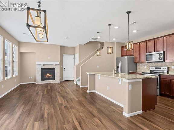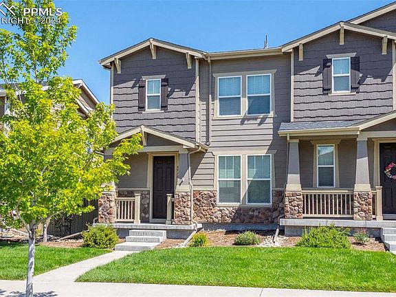 Beautiful two-story home in the perfect location! Literally steps from open space and Trail head, near the Outlets at Castle Rock, The Grange, Redhawk Golf Course, hiking, and parks, never be short of entertainment. Located at the top of a hill, away from all traffic, and prefectly situated close to all ammenities, enjoy being near everything but still privately tucked away. This home welcomes you in with engineered wood flooring into the bright great room featuring a gas log fireplace. The eat-in kitchen boasts granite countertops, large center island, custom pendant lighting, pantry, and stainless-steel appliances. Head upstairs to find a primary suite with walk-in closet and private bathroom, two secondary bedrooms, full bathroom, and conveniently located laundry room. Bring the entertainment outside to the beautiful xeriscape side yard featuring a paved patio. Near I-25 this home is location is perfect for commuting. Don’t miss out on this amazing opportunity to own the beautiful two-story home!