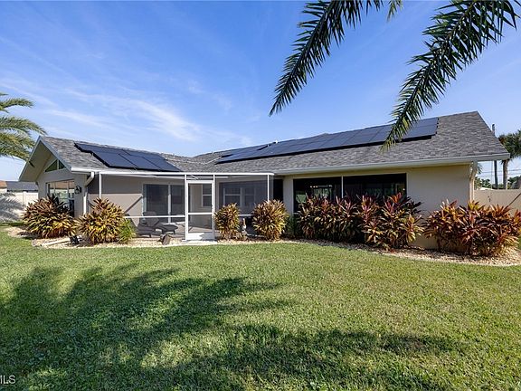 Welcome to this beautifully updated 3 bedroom 2 bathroom, 2 car garage, split-floor plan home in this desirable centrally located neighborhood of Cape Coral. The stone facade and newer garage door enhance the curb appeal of this 2,152sf home. A spacious open floor plan with all new tile throughout has a remodeled kitchen with granite countertops and newer appliances. Two living areas allowing for great space for family and friends. Hurricane impact windows, living room triple sliders and master bedroom slider to lanai allow for peace of mind. Additional upgrades include solar panels which provide you a $25 month electric bill, new roof 2021, AC 2022 and lanai hurricane screens. A large tiled 600sf screened in lanai overlooks a beautifully tropical landscaped oasis with a fully fenced in yard adding privacy and safety for pets and kids. This home subject to probate, is being sold furnished and has never flood. Schedule your appointment today.