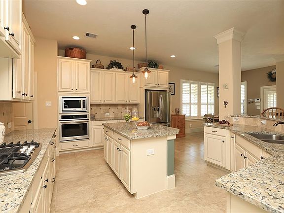 Awesome 1.5 story with 3 car garage on a CDS plus located in a Gated Community! Large Covered front and back porches! Wide driveway for extra parking! This one has it all! Upstairs is a large bonus/4th bedroom with walk in closet and full bath! Formal study/Living room and Formal dining w/ distressed wood floors & plantation shutters! Gourmet kitchen with large eat in island, white cabinets with tons of storage- lots of pots and pans drawers! Upgraded stainless Steel appliance package! Large breakfast bar that overlooks family room (distressed wood floors & plantations shutters!) Secondary bedrooms have flex/ game room between them that closes off from rest of home. Great Kids retreat or Elderly Parents private living area!Master has tray ceilings plus plantation shutters! Master bath has garden tub and separate shower plus LARGE walk in closet! Additional 1/2 bath down for guests! Tons of parks, playgrounds, area pools, walking trails, tennis courts! Elementary School in subdivision!