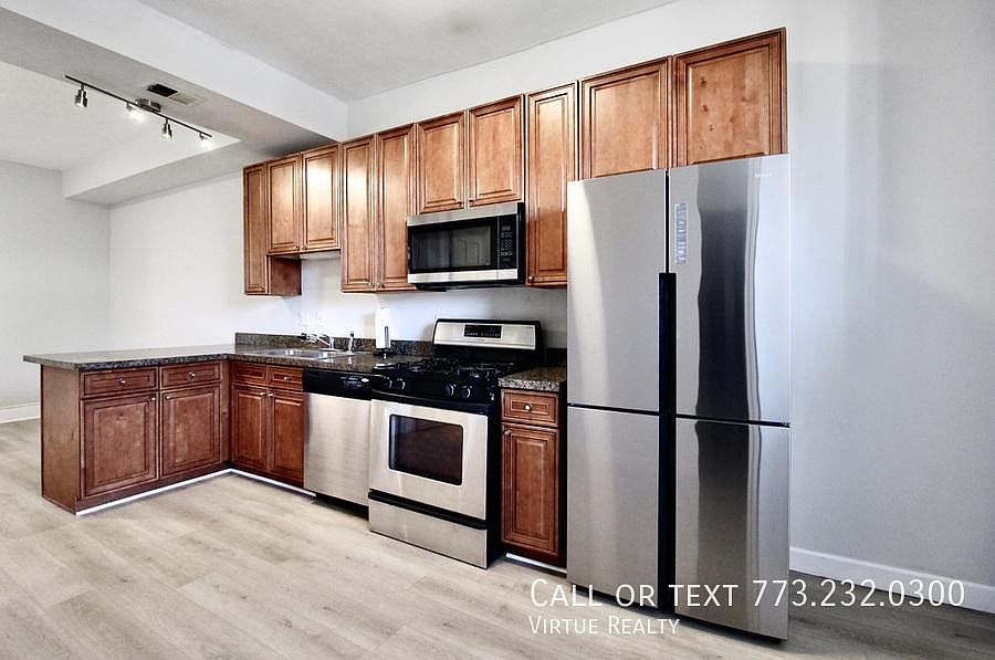 Now available on the TOP floor of this Bronzeville walk-up awaits a REHABBED floor plan boasting brand new bathrooms with modern fixtures like marbled tile and rain-shower head. New grey plank floors throughout the entire spacious home with freshly painted walls. SS appliances in the kitchen, tons of cabinet space and a pantry closet. Primary king-sized bedroom offers a jack & jill en-suite bath, while 2nd, 3rd, 4th bedrooms will fit at least a queen bed and all have a good amount of closet space. Enjoy fresh air from a large deck overlooking the gated yard and unassigned parking area to the back. Short walk to Indiana green line station and White Sox Stadium, ~10mins driving time to UIC or University of Chicago! Rear off-street parking available - first come first serve Cats welcome with $25/cat/month, no dogs. Water, sewer, trash, recycling included. NO SECURITY DEPOSIT! Non-refundable 1-time move in fee of $600 + $150 for each additional adult. All adults and co-signers must apply separately and all occupants will be named on the lease. $75/adult to apply will be credited to the move-in fee if submitted within 24hrs of a tour. (Brings moving fee down to $525 for one adult) Ideal credit score is above 650, but all credit factors are considered, not just the score. No open/past due collections on essential accounts like car, gas/electricity, phone etc. We do not accept apps with evictions or currently past due rent. Total combined annual household salary must meet or exceed 3x monthly rent in verifiable income before taxes = $6,750/mo or $81,000 per year. Please ask for details on any situation-specific questions, thanks!