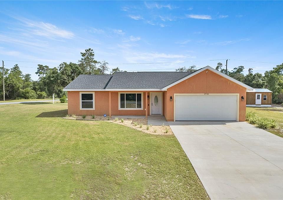 This is the one you have been waiting for! Recently built in 2019 on nearly a half acre oversized corner lot. This amazing 3 Bedroom / 2 Bath property offers 1385 living sq ft of open floorplan. Enjoy cooking in this gourmet kitchen with granite counters, stainless steel appliances and plenty of cabinet space. Tile flooring throughout main areas with laminate in the bedrooms. Split bedroom plan with the a large walk in closet in the primary. There are two sheds for all of your storage needs and the perfect workshop or mancave. The large backyard has room for all of your hobbies or enjoy a glass of wine watching the sunset on the concrete patio. This amazing property is ready to make your dreams come true.