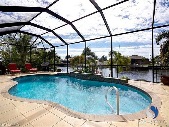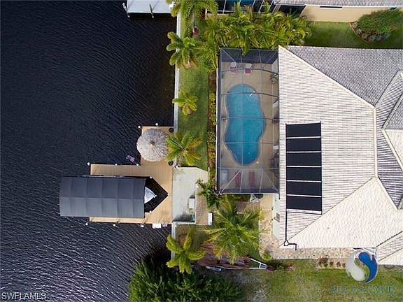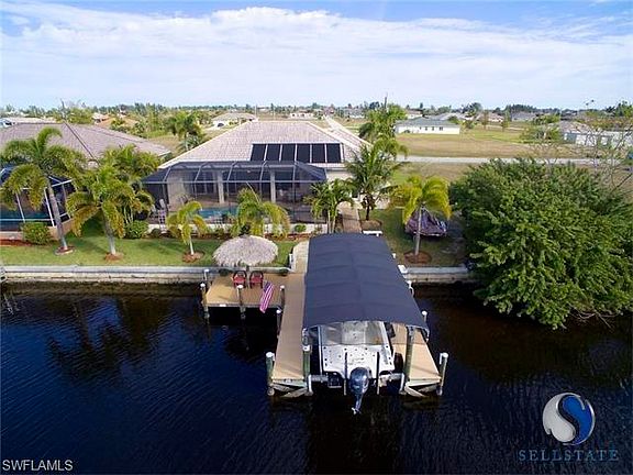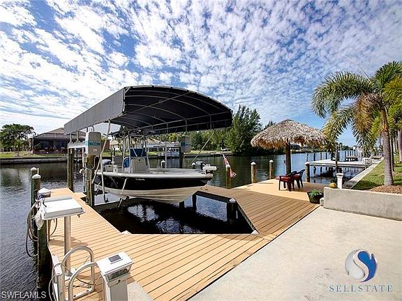 Fall in love with this bright and cheery gulf access pool home. It is IMMACULATE and shows like a model! Beautiful southern exposure lanai with a large solar-heated pool w/ waterfall, tiled lanai and pool deck, large wrap-around, no-maintenance dock with a fish cleaning station w/ water & electric, tiki hut, boat awning, 10,000 lb. boat lift overlooking a wide canal. Quick access to Matlacha Pass. Home features an open floorplan, windows everywhere, French doors to the den, large master suite with walk-through shower, double vanities and large soaking tub. Nicely upgraded kitchen with granite, custom tile backsplash, newer SS appliances, breakfast bar, upgraded fixtures and bright breakfast room. Reverse osmosis for drinking water, 3 car garage with room for your cars and toys, tons of closets and storage & more. Convenient area surrounded by beautiful homes and close to shopping, restaurants and more.