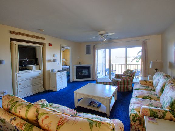 When you're not outdoors, relax on the screened-in porch with your favorite drink and enjoy watching the wildlife and sunsets. You can eat inside at the table for four in the kitchen or enjoy the spacious living room. There are three TVs, living room, and both bedrooms. WiFi, cable TV, and stereo surround sound. A kitchen that is up-to-date and stocked with plenty to enjoy cooking. The stack-able washer/dryer is in the closet. Enjoy the electric fireplace too. The master bedroom has a queen bed with full ensuite bath and the other bedroom has a queen bed as well with an ensuite. There is a pullout queen in the living room.