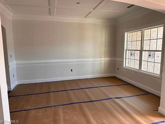 New construction! Our low maintenance Sheffield twin home features 3 bedrooms, 2 baths, crown moulding, dining room with faux coffered ceiling, blinds, and study with glass French doors. The great room features tray ceiling, gas log fireplace, and built-in cabinets. The kitchen features granite countertops, pendant lights over the island, under cabinet lighting, upgraded cabinets, and stainless-steel appliances, and refrigerator. Tray ceiling and ceiling fan at owner's suite. The owner's bath features a 6' tile shower, frameless shower glass door, framed mirror over quartz vanity, and upgraded cabinets. Secondary bath with upgraded cabinets. This home features upgraded flooring, door hardware handles, and so much more!