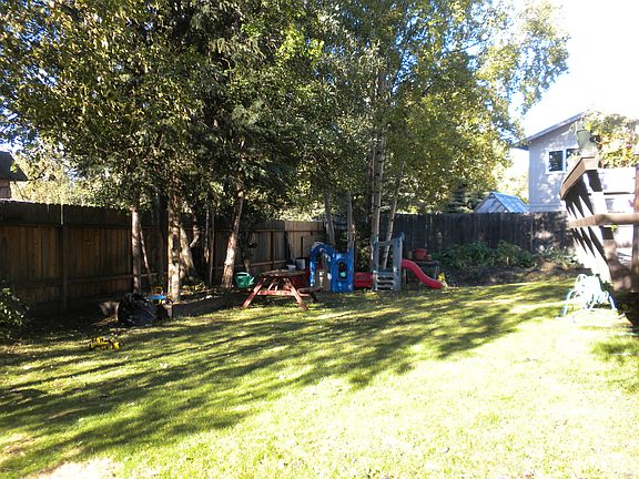 New roof and boiler installed in 2010. Kitchen has all stainless steel appliances; microwave and dishwasher are brand new. Newer carpet. Digital thermostats on both levels. Hunter Douglas Honeycomb shades throughout. Insulation added to attic and spray foam in crawl space in 2010. In March of 2011 the house received a 4 star energy rating by the Alaska Housing Finance Corporation. The fully fenced backyard (0.19 acres) is home to an established peony flowerbed, rhubarb patch and a variety of trees. Also out back is 8 yards of newly groomed dirt, along with two grow boxes ready for a large vegetable garden. Annuals planted this past year include strawberries, asparagus and garlic. Established flowerbed in front with columbines, bleeding hearts, and delphiniums. Newly planted raspberry and currant bushes, as well as an apple tree. The home backs to a quiet church, which provides a very peaceful and private backyard. This is a great family neighborhood, with lots of families in close proximity. Additionally, the house is two blocks from Winchester park and playground http://anchorageparkfoundation.org/directory/winchester/. Further, the neighborhood sits across from Abbott Loop Community Park http://anchorageparkfoundation.org/directory/abbott/ . This park and recreation area offers baseball fields as well as an extensive trail system that can be used for running, hiking, biking and skiing.