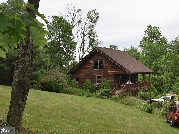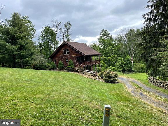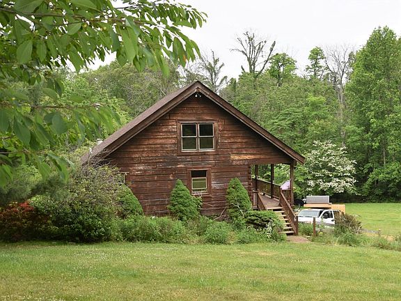 Cozy cottage nestled in the mountains with lots of privacy and wildlife. This is the perfect get away from the "City and enjoy nature or year around living. Sadly for health reasons, the owner has to relocate and the property is being sold "as is" but don't let that discourage you. The roof has been replace in the last couple years and the HVAC last year. This house has so much character and just needs some updating. Two story great room with exposed beams, wide plank wood floors and a flue for a woodstove. The bathroom features a claw foot tub. Second level is a loft with exposed beams. The lower level is framed to finish with a rough in for the second bathroom. Sit on the front porch and enjoy the pond that has Koi and other fish. The five acre lot is mostly wooded but has cleared areas with fruit trees, stone walls and flowers.