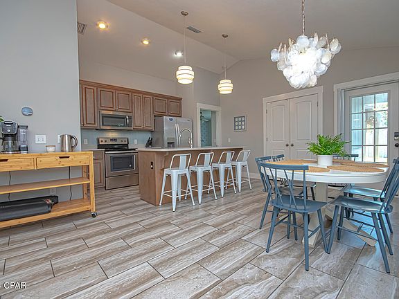 NO HOA's...Welcome to your dream home, ideally situated just blocks away from both the serene Grand Lagoon and the Gulf of Mexico with it's pristine powdered white sandy beach. For the advocate fisherman, boaters, paddle boaters and kayakers, the Dolphin boat ramp is just a couple blocks and you're in the water ready to go. This newly (2017) constructed residence combines modern design with a tranquil coastal beachy lifestyle. This coastal retreat offers a rare combination of luxury and location, perfect for those seeking a modern lifestyle with a golf cart ride to the water of your choice. Boasting 3 spacious bedrooms and 2 full bathrooms, this fully furnished home is filled with natural light, showcasing open-concept living spaces that seamlessly blend indoor and outdoor living. The nicely sized vaulted kitchen/dining room area is perfect for family gatherings. The level fenced park-like backyard which has been recently turfed with a putting green, a newer stone patio and a pergola is great for entertaining. The heated and cooled garage has been converted to a game room entertainment space, including bar, foosball table, skee-ball, Pac-Man and a 70'' TV. This lovely beach home is close to shopping, restaurants, St. Andrews State Park and Richard Seltzer State Park. All this and more......did I mention you can short term rent as well? This is a must see!