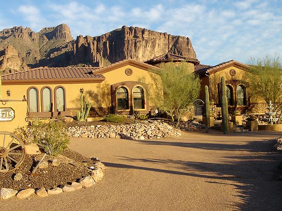 Custom Tuscan Style home. Majestic views of the Superstition Mountains. A sprawling single story home plus a separate Guest House or Mother-in-law house. Plenty of room for a family or welcomed guests. Tons of storage and large closet space. TWO acres make the home special for the area. Access to major highways and minutes away from Metro Phoenix.