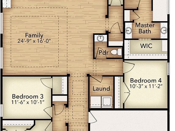 This Emily floor plan has 4-bedrooms and 2.5-bathrooms with an open concept for the kitchen, dining and living area. The spaciousness of the home feels amazing with the high ceilings. The extended back porch with added fireplace is great for sitting and enjoying the beautiful NM sunsets. In this floor plan the primary suite is in the back of the home overlooking the backyard. The primary suite bathroom has 2 sinks and a beautiful walk-in shower.