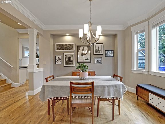 Quality built Craftsman in the heart of N PDX. Charm & character thru-out; Crown molding, Box beams, Built-ins, Two fireplaces & REAL hardwood floors. No carpet! Ample work & learn from home spaces. Superb kitchen w/slab marble, SS, pantry & custom built-in nook. Huge primary suite, Formal living & dining rooms, Main level office & Upper laundry. Fenced yard w/newer composite deck. RARE two car garage. Recently painted exterior. Blocks to Columbia Park & Kenton shops. 93 BikeScore, 77 WalkScore. [Home Energy Score = 6. HES Report at https://rpt.greenbuildingregistry.com/hes/OR10188603]