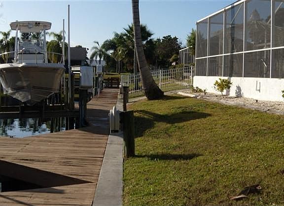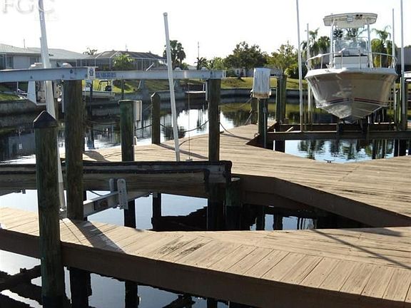 SAILBOAT ACCESS!!! The home is on a direct gulf access canal with quick access to the river. Huge dock with 2 lifts, one is a 12,000lb and the other is an 8,000lb lift. From the outside landscaping to the inside which is beautifully furnished and immaculate. Inside you will see freshly painted walls, tile floors and new carpeting in bedrooms. The great room layout, formal dining room, high ceilings and architectural features along with the four-door pocket sliders leading to the pool area make this a wonderful home for entertaining. The master bedroom and guest rooms have french doors leading to the heated pool which has a fully screened cage. Garage floor is tile. New ac and water heater, the exterior was recently painted, full storage in attic area, security cameras on outside of home with security lights and motion detectors. Kitchen has instant hot feature. All door keys are bonded and cannot be copied, 2 built in safes. Move in ready! Boat on lift is for sale also!