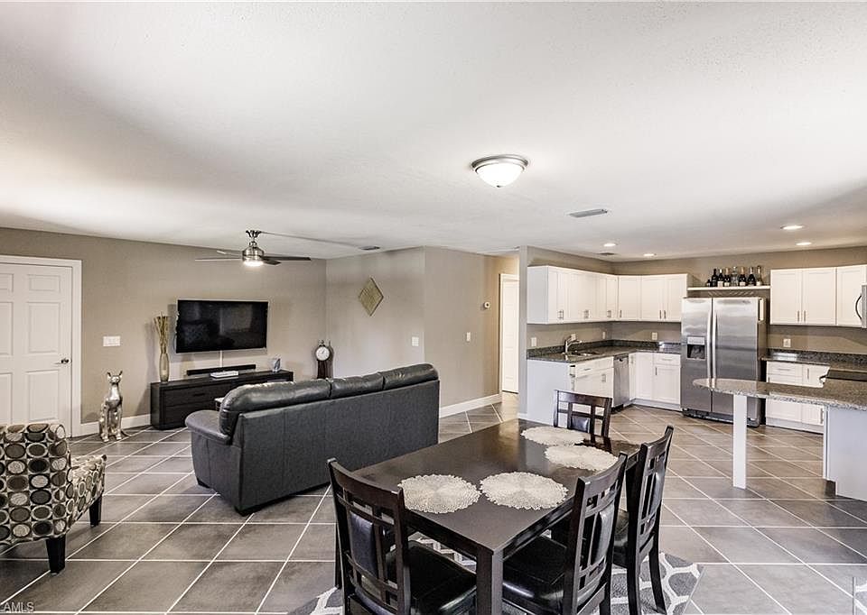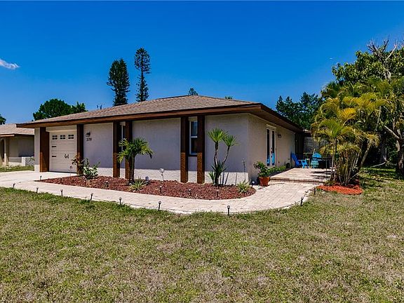 Completely updated and move in ready, this is one of the smartest homes in the neighborhood. Granite counter tops. Stainless steel appliances with warranties. The completely renovated bathrooms are modern and bright with granite, soft-close cabinets, glass showers and in lovely neutral tile colors. Any couple will be pleased with dual vanities in the master bath. Both bedrooms have lighted, walk-in closets and open to separate, screened lanais with freshly finished floors Mature fruit trees in a generous yard. The tiled garage has a new garage door opener and plenty of storage space. You'll benefit from the extras the Sellers have done ie: Updated piping & wiring on water heater, replaced shower valve cartridges ($250 each), made home wifi ready, new washer and dryer & more. Lovely SE Cape Coral neighborhood with well cared for homes. Close to shopping and just off of Palm Tree Boulevard. Furnishings are negotiable at this time. Don't wait! This home won't last.