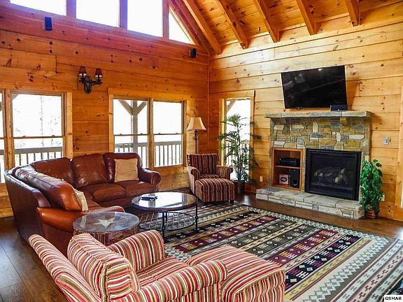 Lovely 3 Bedroom/ 3.5 Bath Log Style cabin conveniently located to The Great Smoky Mountains and surrounding areas. Enjoy access to town on the back roads and avoid the traffic! Spacious, open layout on the main level greets you as you enter offering lots of glass to let you soak in that Smoky Mountain Sunshine. A finished basement is equipped with a Rec room, Wet Bar and Bedroom. The cabin is fully equipped & furnished and has wrap- around Decks and a Hot tub. Currently on a rental program this home also has the potential to make a great permanent residence.