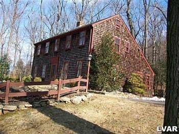 REDUCED TO SELL- TODAY! New England Salt Box,situated on 2.6 acres, overlooks the valley and offers panoramic views from every window. Professionally landscaped. This 4 bedroom, 2.5 bath homes possesses all of the characteristics and charm expected in a New England Salt Box design-Western Cedar Shingle Siding( no maintenance),Oak Hardwoods and a floorplan that utilizes all of its 2450 square feet to the best living space advantage.Plenty of counters and cabinets, double oven,center island, recessed lighting, 2 pantry closets and breakfast room. Modern Bathrooms. Formal LR w/wood burning fireplace and french door,FR w/b-in bookcases and HW,sun room with wood burning stove (energy efficient) Central A/C, Oil Forced Air,Laundry Room w/set tub,Partially finished basement with Bilco Egress. The added feature to this property is the 2 car detached (barn type) garage with 575 sq. ft of flex space above. Ample storage throught.Priced for today's market. A few minutes to I-78 -COMMUTER CONVENIENCE