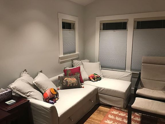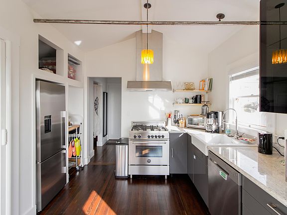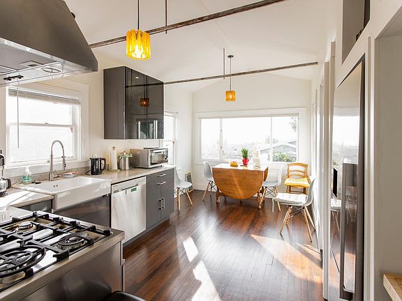 Exquisitely remodeled cottage, vintage 1911 in the Upper Laurel District of Oakland. Offering a tranquil environment, this tiny but mighty 584sf home is outfitted with a chef's kitchen featuring Bertazoni range, Fisher Paykel fridge, Bosch dishwasher, and a scrumptious view of the Bay. The bathroom features a Toto Washlet, a shower with rain and standard shower heads, and continuous hot water from Takagi on demand water heater. Furnished bedroom with queen-size bed (Tuft & Needle mattress) and open closet with tansu. Great room with desk, queen sofa bed, bookshelves, antique chest. Parking on driveway and on street. Deck with bay view. Garden area and fruit trees surround cottage, including private fenced back yard. Washer & dryer in basement. Basement has a substantially large storage area with a bonus room. House and yard are dog (small to medium) friendly. Chickens wander in adjoining separate back yard and renter has fresh egg access (please no pets in chicken area as they can harm chickens). Non-Smoking house. Portable AC unit is included. $3000 per month; 6 month lease duration is negotiable; renter pays utilities (PG&E, internet, Waste Management). Owner splits EBMUD fee as water is also used for garden/orchard. First and $3000 security deposit. Pet Rent $25 per Month. Property available after 8/1/20. Property viewable after 7/16/2020. Application, Credit Check (paid by renter), and reference check required.