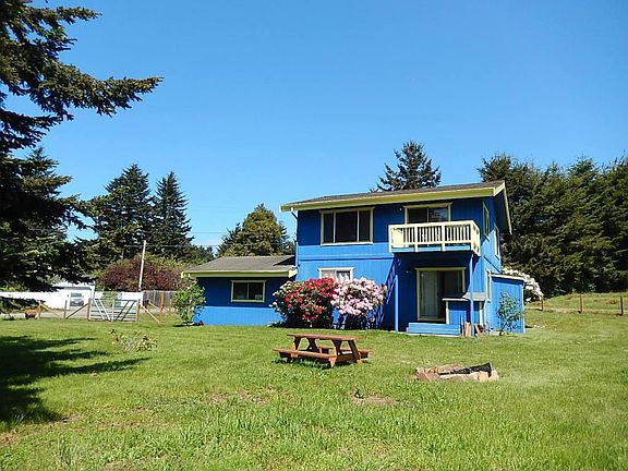Westhaven country home with great flat and usable fenced space of nearly 1/2 acre. Two bed, two bath older 1450 sq ft home, vaulted ceilings, tile tub surround, large bedrooms, wood & carpet flooring, stove and refrigerator, double garage, forced air heat. Currently used as vacation rental. See additional photos and info at trinidadretreats.com search for Blue Heron.