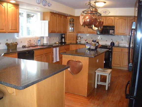 Country living with all the modern conveniences...5 bedrooms, 2 bathrooms. High quality throughout, the gourmet kitchen features teak floors, a copper sink and granite counter tops. This fabulous kitchen opens into the spacious family and dining room that boasts vaulted ceilings, large picture windows, and hardwood floors. The bedrooms have plenty of closet space, the master bedroom has a slider onto the deck, the master bathroom features a custom walk-in tile shower. Wonderful formal living