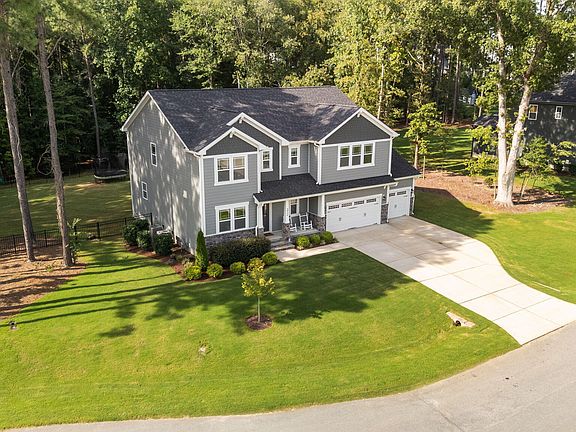 Discover the best of both worlds as modern charm and excellent floor plan versatility blend perfectly into a serene, nature-filled cul de sac lot in highly sought-after Portofino. Keep the car parked and take a stroll on the Portofino trails along the Neuse River, or head on over to the pool for a quick dip. Back home, an open concept floor plan creates a seamless flow between living spaces, ideal for entertaining. The gourmet kitchen features beautiful granite countertops, a large island with barstool seating, custom cabinetry, tile backsplash and a butler pantry leading to the beautifully designed formal dining room - highlighted by custom trim and designer paint. Unwind by the fireplace or take the festivities outside to enjoy the large, fenced-in backyard surrounded by mature trees. Back inside, a flexible floorplan features a main level bedroom and upstairs loft with additional bedrooms offering many solutions for the ever-changing work/life balance. Additional property features: 3-car garage with added shelving and overhead storage, EV charger installed, custom cabinets and shelving in primary closet, professionally placed accent walls and coffered ceilings with high-end paint throughout, luxury vinyl plank throughout the main floor living spaces. Portofino features an exceptional equestrian center, 2 community pools, 7 miles of walking trails, 2 clubhouses and a large pavilion which is home to perhaps the Triangle's largest annual Kentucky Derby Party! Conveniently located off NC-42, you're just a short drive to shopping, dining, downtown Clayton and the YMCA. Convenient access to I-40 and the recently expanded 540 make it easy to navigate the Triangle. Whether heading into downtown Raleigh, Research Triangle Park, or RDU, you've got smooth connectivity to all the area's major destinations. Welcome Home!