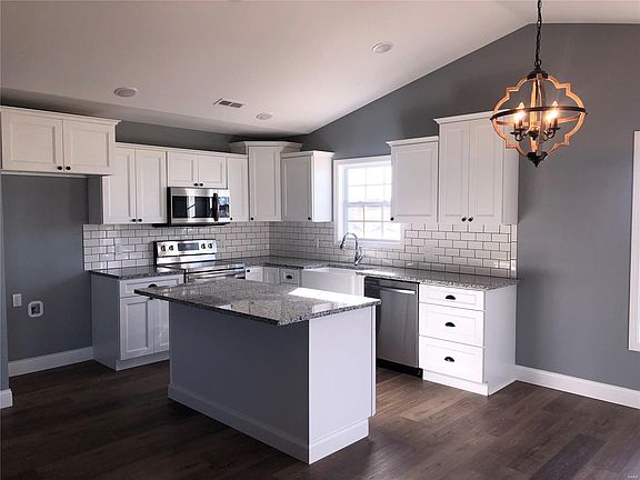 A stunning Highlands Ranch neighborhood home just hit the market in Jackson, Missouri. This delightful ranch home features 3 bedrooms, 2 bathrooms & 1800 sq. ft. +/- of living space. The entry way to the slab home features an ingenious custom built storage cubby, your next few steps will lead you to an open floor plan, vaulted ceiling and an expansive living room with lots of natural light. The kitchen comes equipped with stainless steel appliances, painted cabinets, granite countertops, farmhouse sink, subway tile backsplash, a beautiful center island and a walk-in pantry with custom shelving. Master bath has a 6' free standing bathtub, set off by subway tile and a separate shower. There's even a built-in linen closet separating the double sinks. The master bedroom has a walk-in closet with custom shelving. The 2 bathrooms have quartz countertops. During the warmer months, entertain in style under the 12x14 covered patio. This home also comes equipped with an oversized 2 car garage.