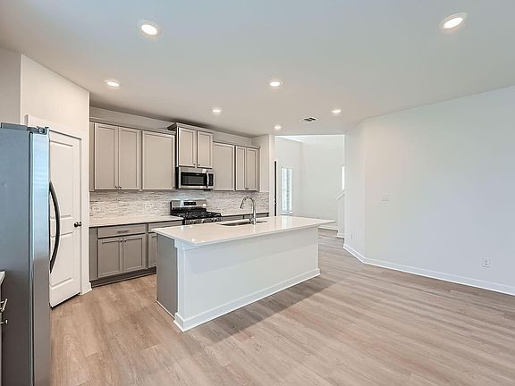 READY NOW! What sets the Gaines apart is its seamless flow and spacious design, featuring 4 bedrooms and 3 full bathrooms. The open kitchen and generous dining area create the perfect setting for both casual meals and entertaining. At the rear, the private primary suite includes a large walk-in closet and an elegant en-suite bath. One additional bedroom and a full bath complete the first floor. Upstairs, a sizable game room, two more bedrooms, and third full bath offer extra space for relaxation or guests. The large covered patio in the backyard is ideal for outdoor dining and entertaining al fresco.