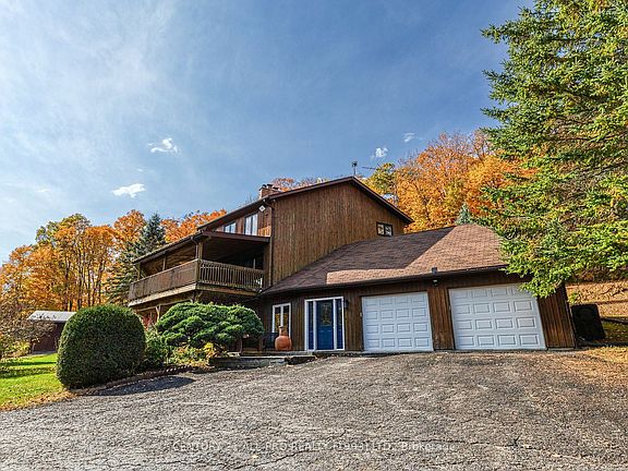 5.35 Acres of majestic and breathtaking sights and sounds at every corner of this outstanding property. If first impressions were everything, 372 Broomfield would blow the socks off the competition with its Grand winding driveway leading to your hill top estate. Complete with outbuilding/barn, paddocks, chicken coop, lean-to, sugar shack and an abundance of gems around every corner. Step inside to the Custom Built home featuring 3 uniquely finished levels complete with 4 Bedrooms and 3 Bathrooms. The Primary Suite includes a 4-piece ensuite, fireplace, oversized walk-in and features a patio walkout to covered deck offering panoramic views. Showcasing this elaborate home is the magnificent Great Room equipped with soaring vaulted ceilings, a multitude of newly installed windows, a double sided wood fireplace dissecting the master quarters and elegant great room space, all overlooked by the spectacular second floor loft. Must See with Character and Charm that will blow you away!
