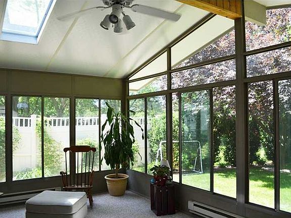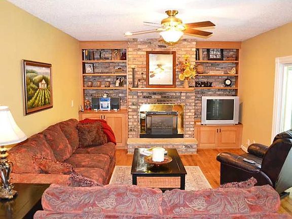 You will fall in love with this home on the inside and outside! Relax in the beautiful park-like backyard with mature trees, extensive landscaping, maintenance-free deck, storage shed, and swing set included. Oak hardwood floors throughout the foyer, half bath, kitchen and great room. Formal living and dining rooms. Gorgeous kitchen with newer cream cabinets, quartz countertops, island, black appliances, undermout sink, and lots of cabinet space. Kitchen opens to the great room with brick fireplace and built-ins. Breathtaking 3 seasons porch with 2 skylights, and baseboard heat. Convenient main level half bath with new vanity and marble top. Large master suite with walk-in closet and private bathroom. 3 large bedrooms (one with double closets) and a full bath complete the upstairs. Lower level rec room with new carpet. Lower level laundry room and half bath. Don't miss out on this beautiful home in popular Bowman Woods!