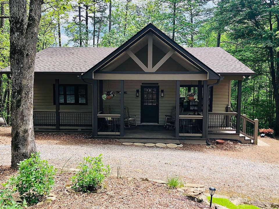 Builder’s own 1,200 s. f. two bedroom, two bath cabin. A complete remodel of the cabin was completed Fall 2020. The cabin features whitewashed 10” wide wood planks on all interior walls. The ceilings in the main cabin and two bedrooms are vaulted and covered with T&G V Groove pine. A 16’x 12’ Sunroom/Breakfast room opens to the kitchen. This room faces the creek and has three walls of floor to ceiling windows. The flooring is premium vinyl plank with beveled edges. The bathroom floors are heated porcelain tile. The master bath has a large tile shower with a heated floor and a frameless glass enclosure. The second bath features a free-standing tub. The hallway features Butler’s pantry cabinetry with granite countertops which houses the hidden washer and dryer. The remodel also included new kitchen cabinets, granite counter tops, Kitchenaid appliances, Pella Impervia windows, under cabinet lighting, recessed lighting, wiring, insulation, deck, roof, 6” gutters, and a Trane high efficiency duel fuel heating system. The cabin sits on 1 2/3 acres. The back yard is approximately 1 ¼ acres and backs up to 230’ of the Arkaquah creek. This cabin is a couples retreat with a rocking chair front porch and is 5 miles from downtown Blairsville.