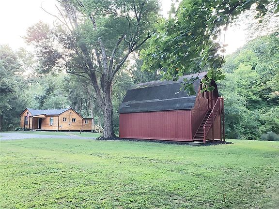 Country paradise. 1.3 acres with over 500 ft creek frontage. Enjoy the tranquil sound of the rapids in this newly remodeled log home from the rear deck. Privacy is a maximum Many updates, include electric,deck,roof, gutters, well. Original tounge and groove paneling throughout the house, beautiful stone fireplace. Great location close to Pittsburgh, SRU, McConnells Mill Park, Moraine. This home is a perfect get away or make it your home and enjoy year round. This is a must see, Bonus is the detached 2 story 20x26 barn.