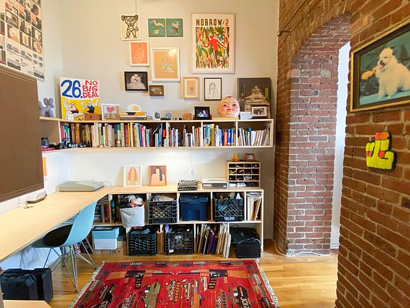 Welcome to this spacious and bright top-floor one-bedroom loft with home office, offering an abundance of natural light and an expansive private roof deck with panoramic views of the city. Upon entry, a large coat closet and additional custom storage lead into the charming living space with a wall of South-facing windows, exposed brick, and an original archway. A separate office nook with desk and shelving provides a meditative work area. The Kitchen features ample cabinets for storage, full-size stainless steel appliances, and a pantry/laundry room with a washer and dryer. The king-sized bedroom is a serene retreat with whitewashed brick walls, built-in storage, and three spacious closets. Up one flight of stairs, the spectacular 400 square-foot private roof deck is yours to enjoy with an unparalleled skyline view. Nestled in the heart of Clinton Hill, the pet-friendly Clinton Mews was converted from a pre-war shoe factory to 78 thoughtfully designed residential lofts in 1987. Right across the street, the lush campus and sculpture gardens at the Pratt Institute welcome you year-round. The building includes elevators, on-site security personnel, bike storage, a landscaped courtyard, live-in superintendent, and two full-time porters. Fort Greene Park with its popular Saturday Farmer's Market is just up the street, while a number of world-class cultural destinations including BAM and Barclays Center surround this historic community. Popular restaurants Miss Ada, Walter's, Olea, Aita, The Finch, Emily, Roman's, Speedy Romeo, and many more are just around the corner. A short walk to the G and A/C train lines for a 15 minute ride to Downtown Manhattan or 30 minutes to Midtown. In addition, the B38 bus to the B/Q/R lines is also across the street. Please note that the Coop requires an application that will take approximately two weeks to process. Anticipated move-in is November 1st.