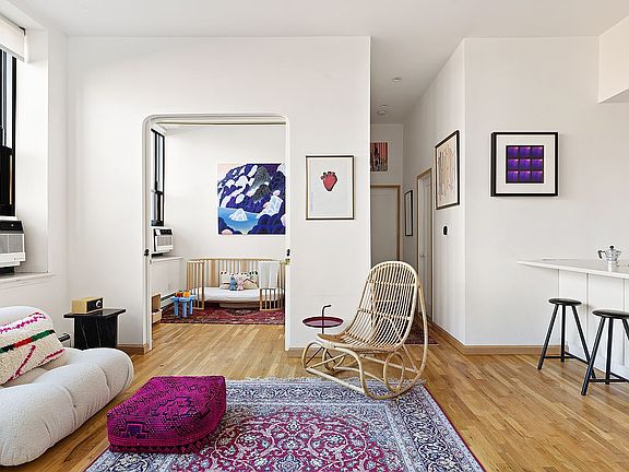 Residence 5A is a fully renovated, light-filled home that combines loft-like charm with modern convenience. Highlights include soaring 11-foot ceilings, oversized 10-foot windows, rich hardwood floors, and abundant storage. The open kitchen, thoughtfully designed with custom cabinetry and LG and GE Profile appliances, overlooks the expansive living area. A dedicated pantry and laundry room with a new LG washer and dryer add to the home's functionality.