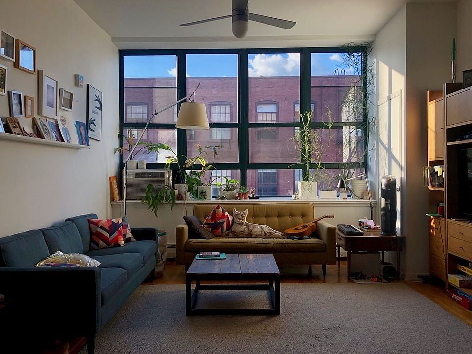 Make this loft-like 1089 sq ft 2 bedroom/2 full bathroom your new home at the sought after Clinton Mews. This apartment features 1 spacious bedroom, 1 small room, 11 ceilings and 10' windows, as well as a kitchen with stainless steel appliances, including a dishwasher and an in-unit walk-in laundry room. Additional features include hardwood flooring throughout, plenty of additional closet and storage space. The building offers bulk rate cable including HBO, Showtime and internet for $50 per apartment. The Clinton Mews is a converted pre-war shoe factory that became a full service luxury Co-Op, located at 372 Dekalb Avenue in historic Clinton Hill. The building features a part-time doorman, elevator, live-in super, communal courtyard, affordable parking and bike storage. Only a short jaunt to the Pratt institute and located near the G train at Classon Avenue. Local favorites include Dough, Mekelburg's, Soco, Urban Vintage, The Market, Olea, etc. No smoking. Renter pays gas + electric. PLEASE NOTE: This unit is on the 5th floor. The elevator will go out of service for a full modernization on August 10th for 8 weeks, we hope to find someone to move in before then. We are willing to offer a discount for the weeks that there is no elevator. Application Fees for Co-op: A check or money order for $200 application processing fee ($300 if there are two applicants), and A check or money order for $100 per applicant ($150 if there are two applicants) for a credit check.