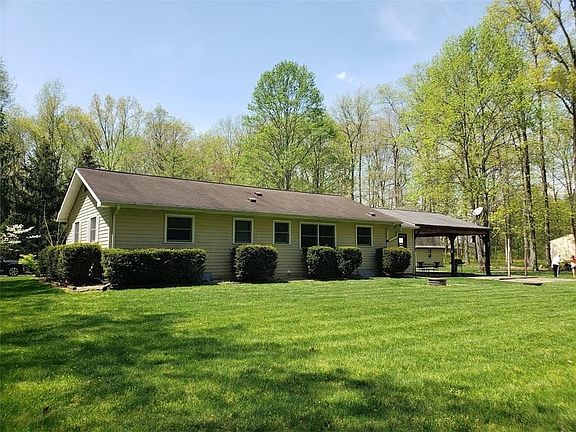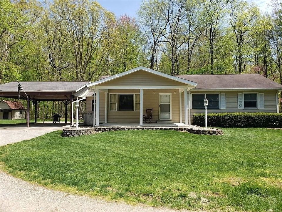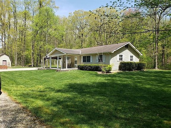 Enjoy country living while still being close to town! This house sits on 6 secluded and wooded acres and features a 3 car detached garage, 2 storage sheds, and 3 large outbuildings. The outbuildings are 14x28, 24x36, and 32x48. There is plenty of space for storage. Relax in the finished basement in the recreation room and bar. Minutes from Interstate 65 and Highway 11. A home warranty is included. All appliances, including washer and dryer, remain. Some furnishings also remain.