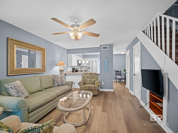 MOTIVATED SELLER - BRING ALL OFFERS! Don't miss this opportunity to own a beautifully maintained, fully furnished unit in one of Gulf Shores most desirable low-density complexes! With its own deeded beach access just across the street, you can conveniently walk to the beach and spend the day taking in what makes this area so special - white sand that stretches out for miles and panoramic views of the Gulf of Mexico. The complex also offers an outdoor pool and BBQ area, offering additional ways to unwind and enjoy the coastal lifestyle. When you’re ready to discover more local attractions, walk or bike to the main public beach where popular events such as the Shrimp Festival and Sand in My Boots Festival are held. You can also visit some of the local favorites like The Hangout or Pink Pony Pub. This complex puts you right in the middle of it all! This unit has never been used as a rental, so it’s very well maintained. It features vinyl flooring in main living areas, kitchen, and bathrooms. The kitchen is equipped with new stainless appliances with a 3-year transferable warranty, subway tile backsplash, and custom lighting over the bar area. The new stove also has a built-in air fryer. Upstairs you will find 2 bedrooms and a full bathroom, with one bedroom that has its own private balcony. The unit also includes an assigned covered parking space directly under the unit and an outdoor storage room perfect for beach supplies. It is also being sold fully furnished, allowing you to settle in right away. Whether you’re looking for a short-term rental investment or a home away from home, this unit combines comfort and a prime location that is sure to meet all your needs. Buyer to verify all information during due diligence.